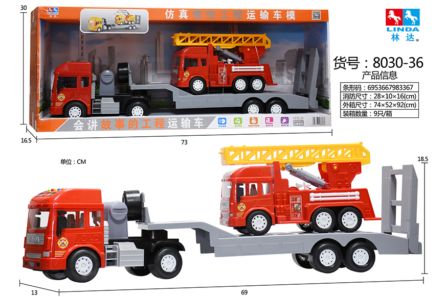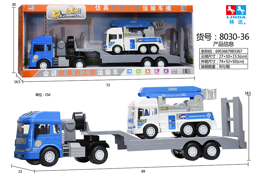 包裝規(guī)格:73×16.5×30(cm)功能: 1.早教慣性運輸車,加慣性工程車完美搭配